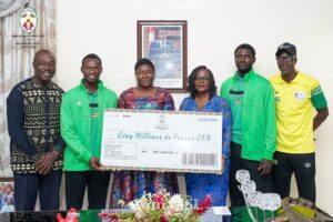 Pour saluer leur exploit et les soutenir dans leur préparation, la ministre leur a remis un chèque de 5 millions de francs CFA, accompagné de distinctions symboliques, en signe d’encouragement officiel de l’État.