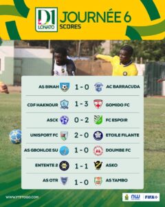 La 6ᵉ journée du championnat national de football D1 Lonato a tenu en haleine les amateurs de football ce week-end. Sept rencontres ont été disputées avec un total de 14 buts inscrits, contre 7 lors de la précédente journée.