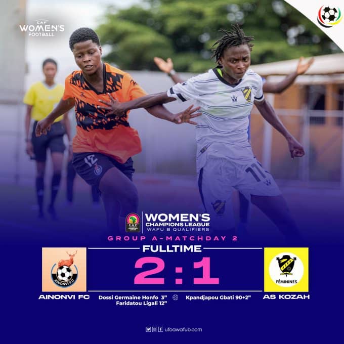 Cette deuxième victoire permet à Aïnonvi FC , représentante du Bénin de se qualifier pour les demi-finales. ASKO doit impérativement remporter son dernier match de groupe contre les Ivoiriennes Inter FC, également défait par Aïnonvi (1-2), ce vendredi à 15h00 GMT pour espérer poursuivre l’aventure dans le tournoi.